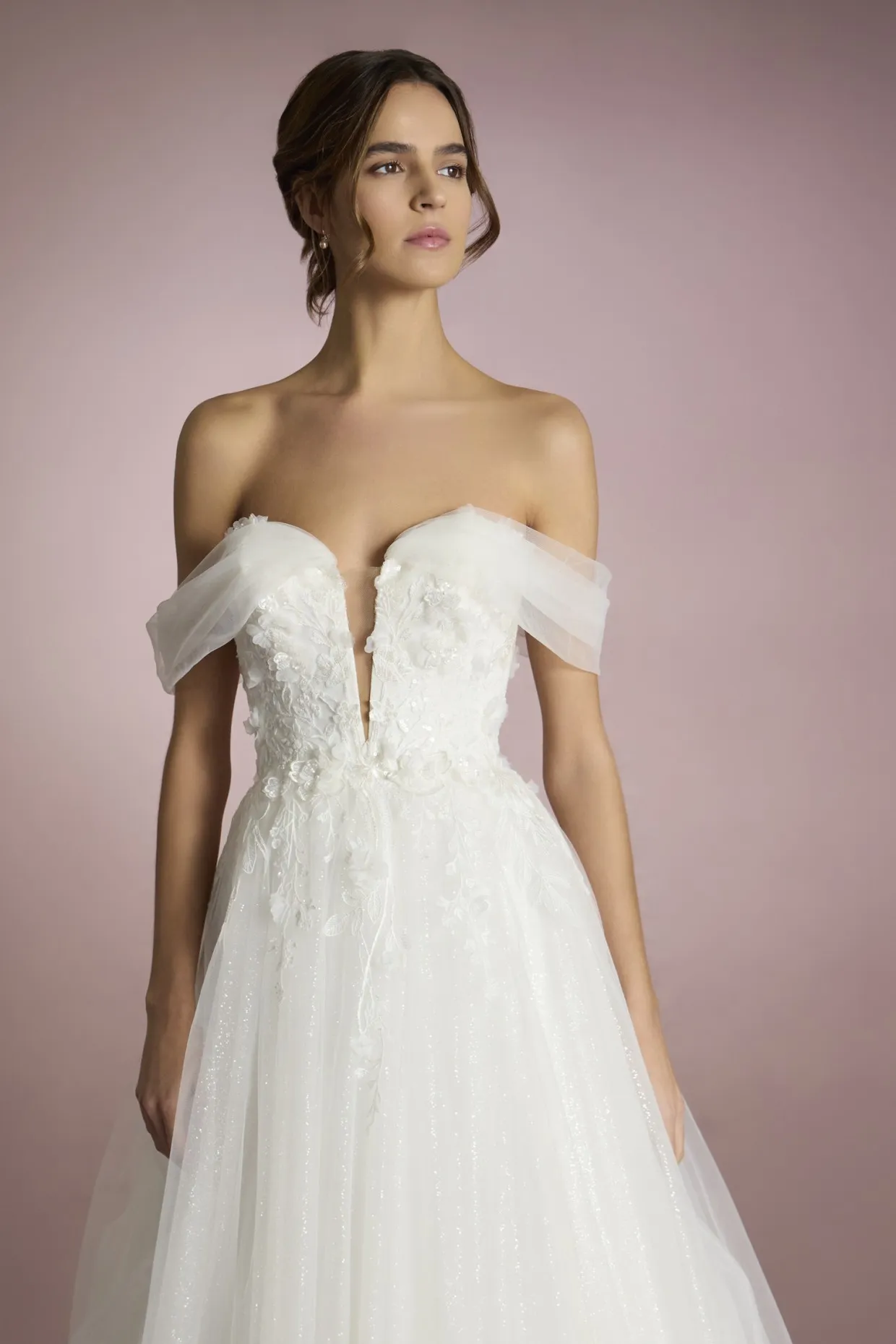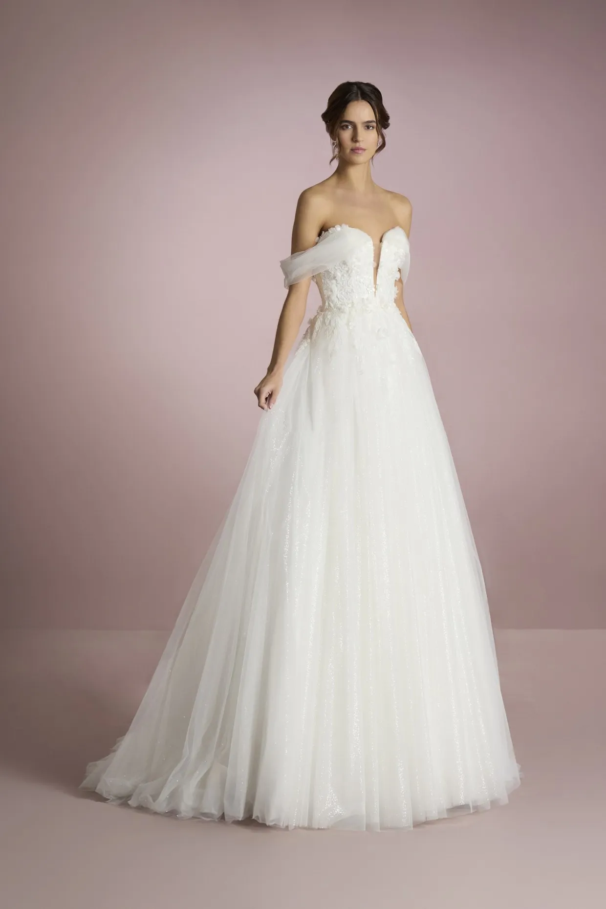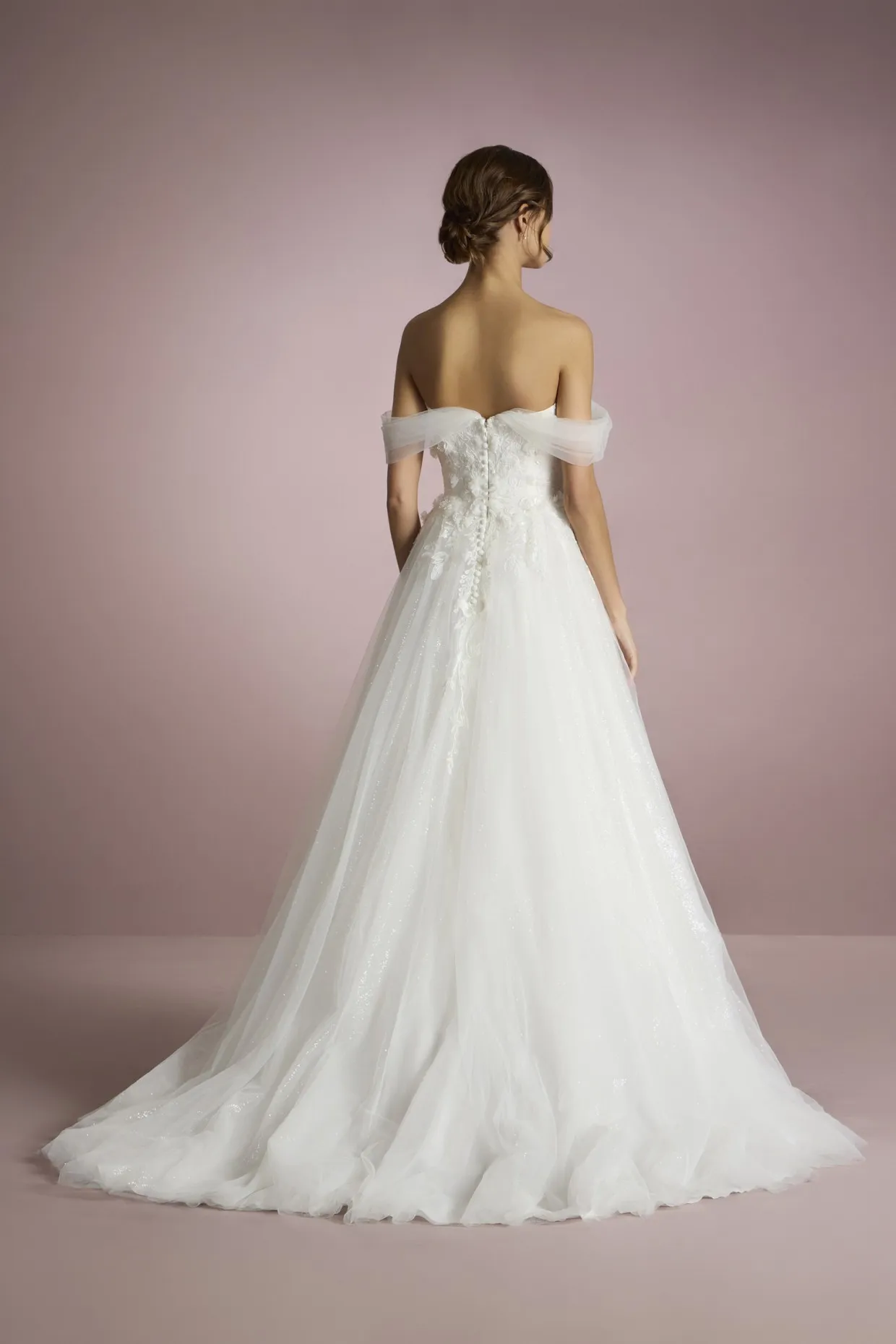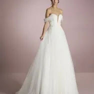 Le modèle ISA est une robe coupe princesse idéale pour les mariées qui ont envie de vivre un conte de fées le jour de leur mariage. Confectionné en tulle, il présente des détails de dentelle, de pierreries et de paillettes qui en font une robe de rêve. Le devant et le dos du corsage sont unis par d'élégants manchons effet tombant, également en tulle, pour davantage de romantisme.