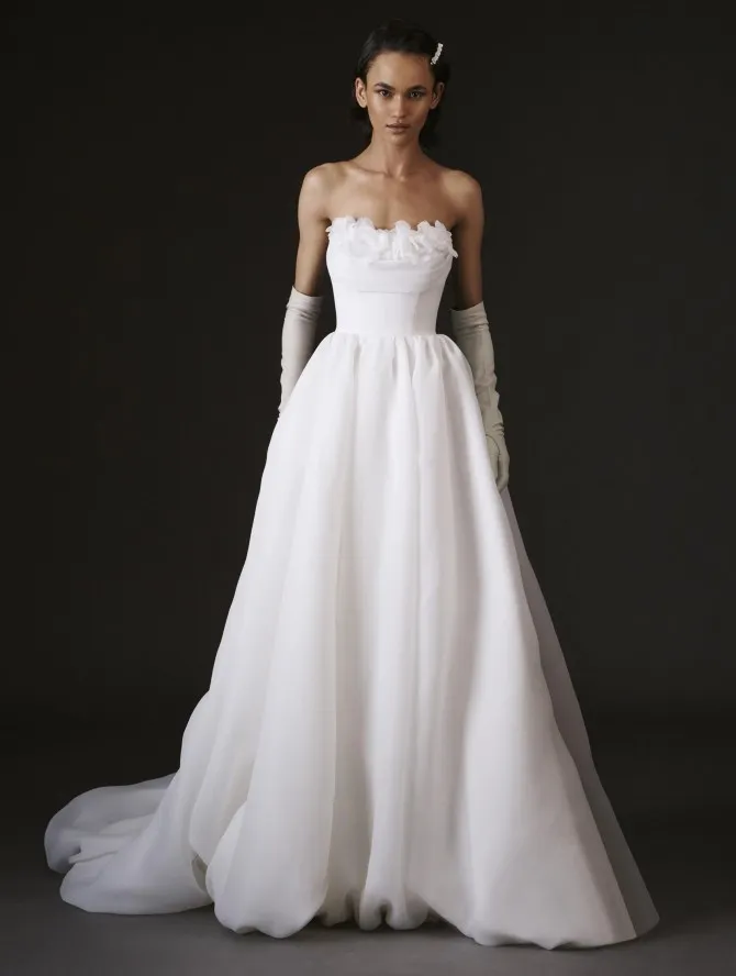 Vera Wang est une créatrice américaine emblématique, reconnue dans le monde entier pour transformer la robe de mariée en véritable œuvre d’art. Alliant audace, modernité et sophistication, ses créations se caractérisent par des coupes originales, des détails délicats et des matières luxueuses qui reflètent la personnalité de chaque mariée. Des modèles classiques revisités aux designs avant‑gardistes, chaque robe raconte une histoire unique et célèbre l’amour sous toutes ses formes.
